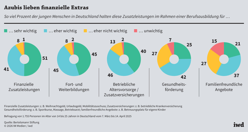 So viel Prozent der jungen Menschen in Deutschland halten diese Zusatzleistungen im Rahmen einer Berufsausbildung für so wichtig bzw. unwichtig